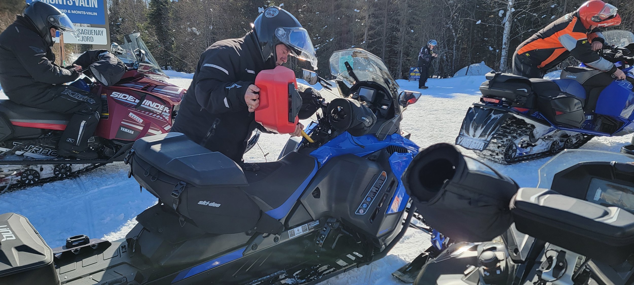 Wish I could tell you there was some drama or issues on the trail, but these guys just won’t give me anything much to write about. I did just recall a little thing, leaving Mekoos, about a mile down the trail, we did pull over to wait for Farmer to catch up to the pack. Apparently, his hybrid Arctic Cat/Yamaha thru an error code of P100 or some such number, and his throttle stuck for a moment before going back to idle. Orange Helmet said there was probably moisture in the throttle unit that let loose, and it threw the error code. Then Connecticut Jim said, while we were waiting on the side of the trail for Farmer, that his Yamaha had thrown that R85 or whatever code on his dash display again. I am not in tune with all these error codes, my Ski Doo dash lights up only when it needs fuel. Just saying.