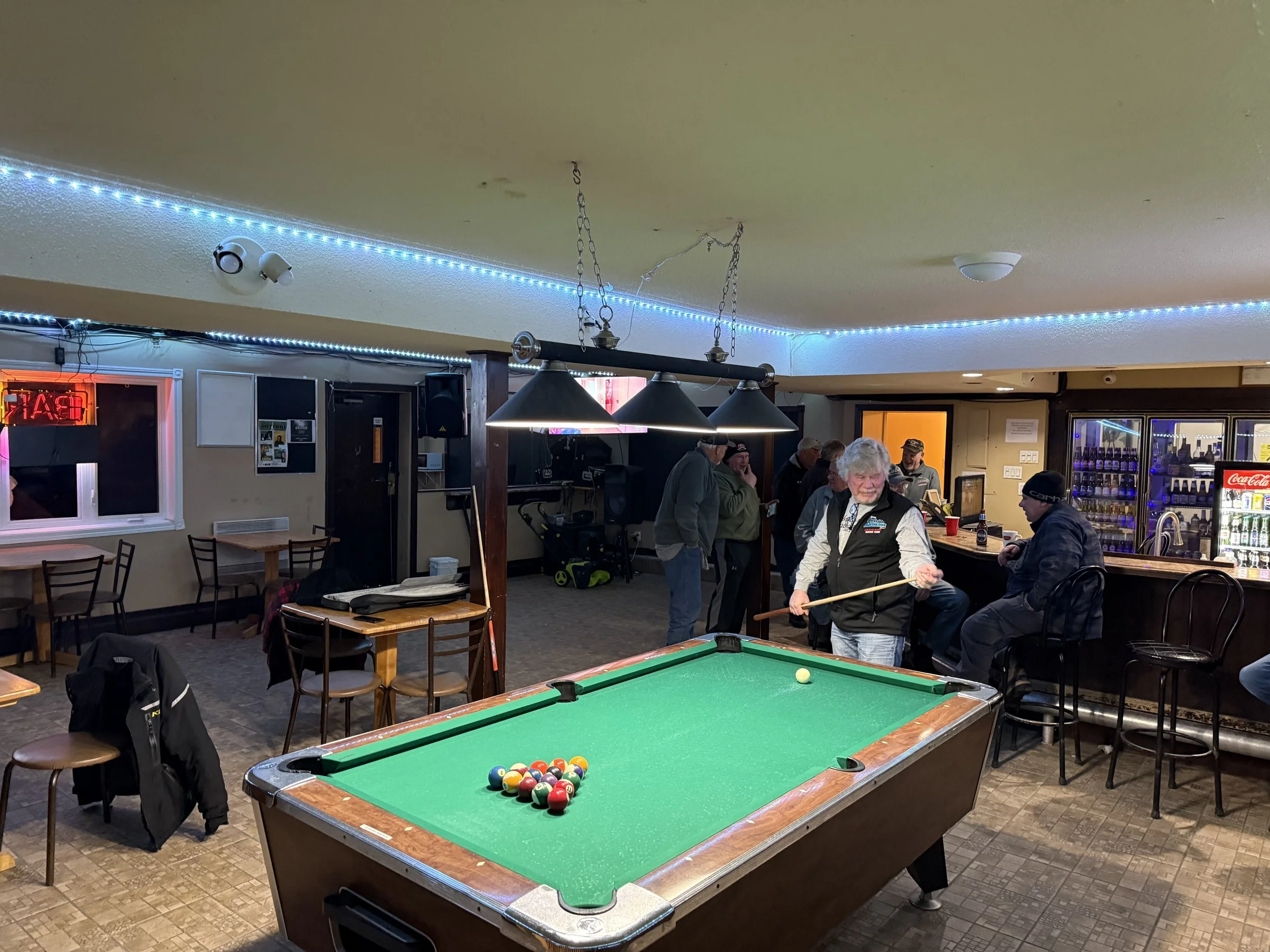 It’s about 6:30 pm, Connecticut Jim and Wiki Rob have already hit the road back to Vermont. The rest of us are gathered in the bar area of The Canadienne. Some are gathered around the bar, and Action Dan has a hot pool game going with the owner of the hotel.